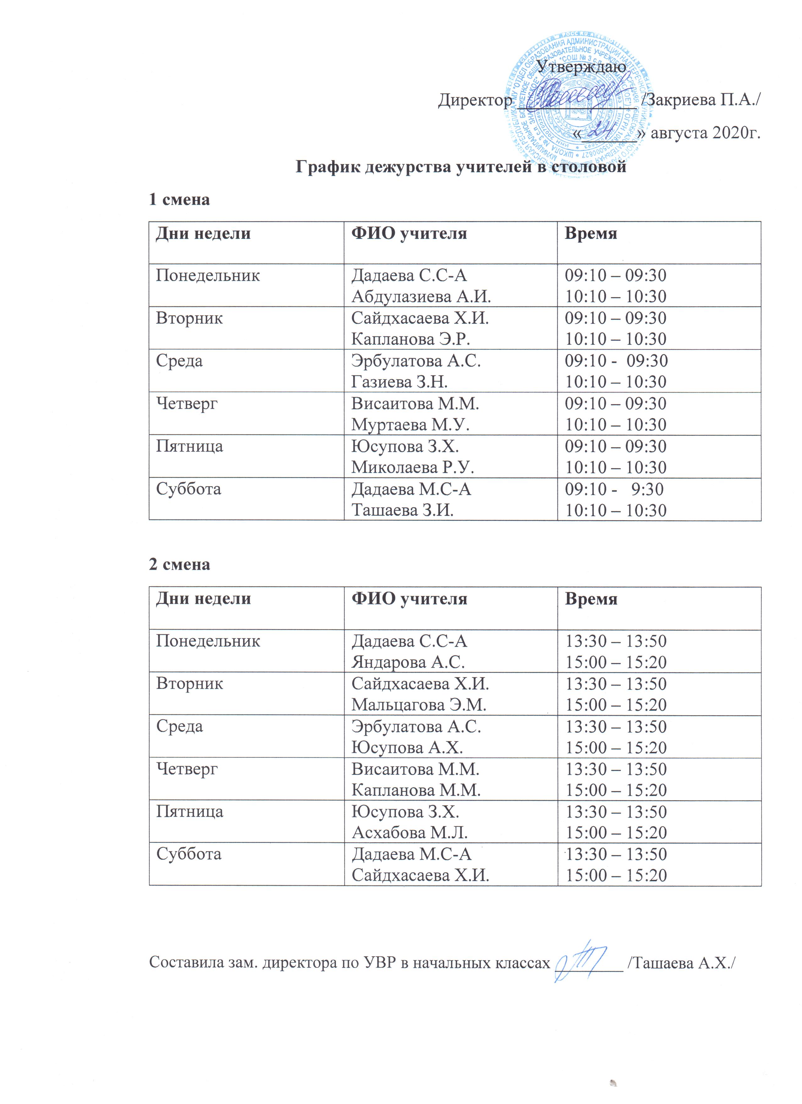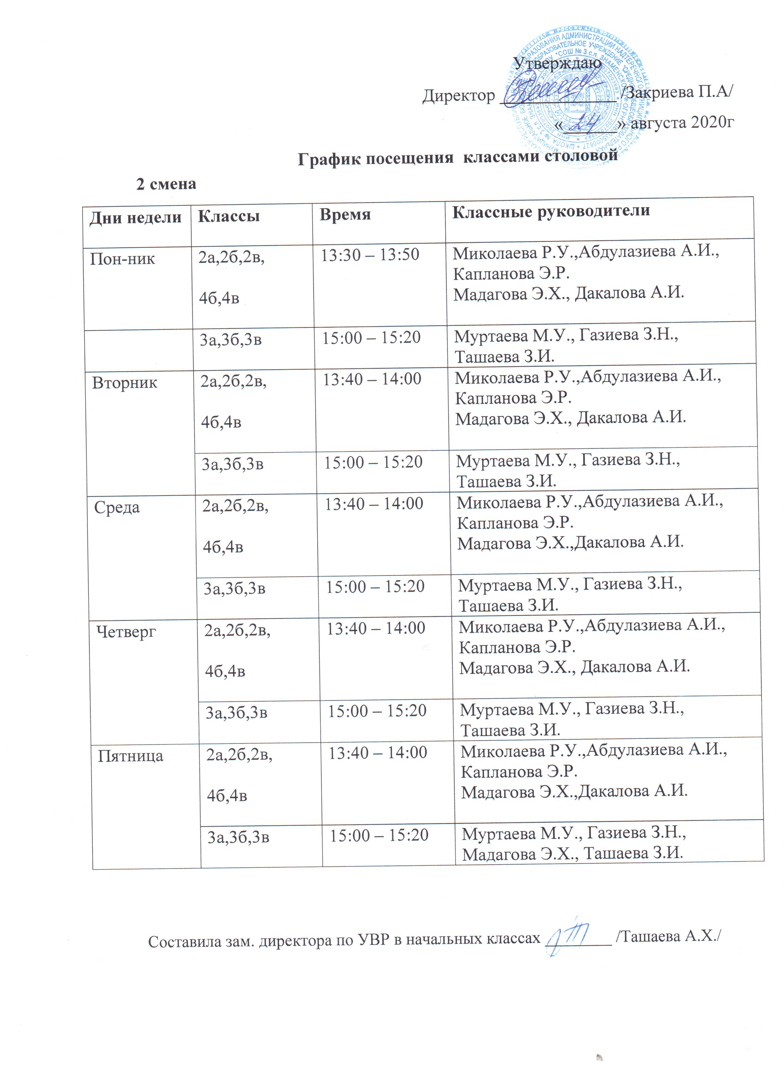 График посещения классами столовой
