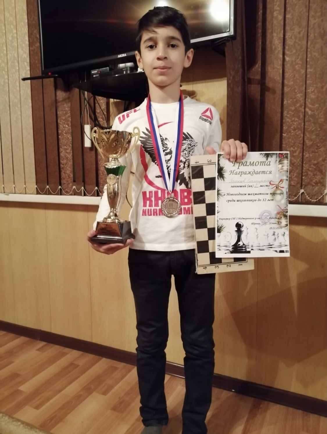 Ученик 5 «В» класса МБОУ «СОШ №3 с.п. Знаменское» Ясаков Самирхан занял 2-е место в Новогоднем шахматном турнире! Так держать!
