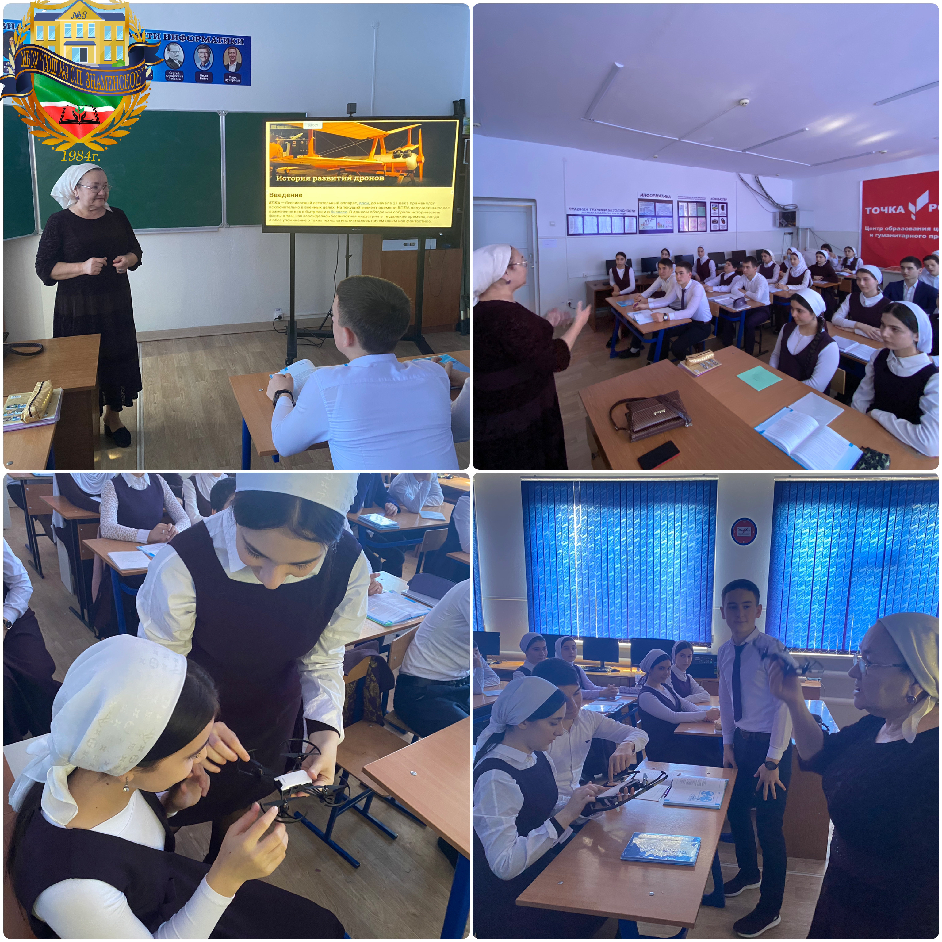 Во исполнение письма Департамента цифровой трансформации и больших данных Минпросвещения России и в рамках всероссийской акции «Урок цифры» учитель информатики МБОУ «СОШ №3 с.п. Знаменское» Шахмурзаева Л.Ж. провела урок на тему «Беспилотный транспорт» на базе Центра цифрового и гуманитарного профилей «Точка роста» среди обучающихся 8 «А» класса