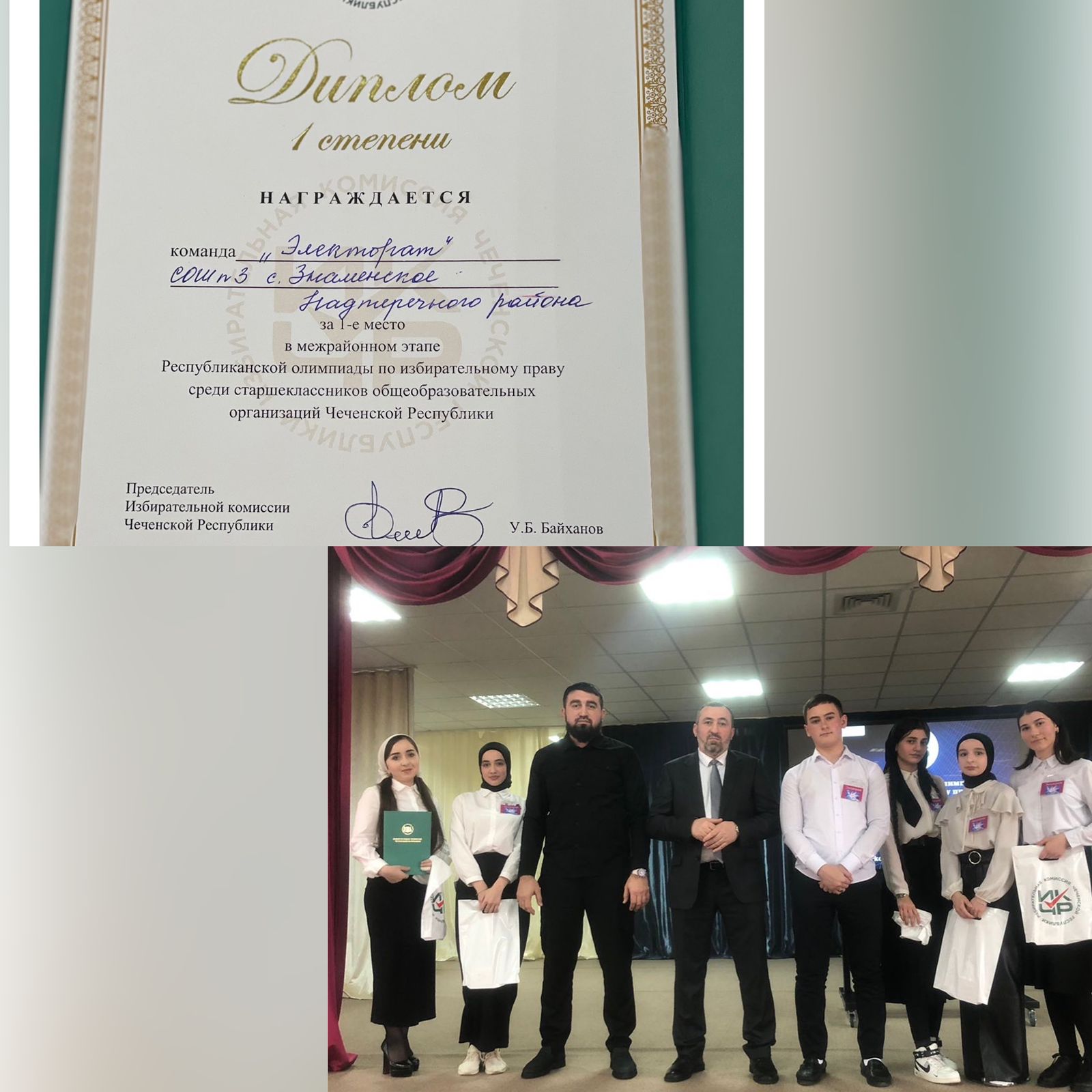 24.02.2022Поздравляем наших победителей😊👏🏻Обучающиеся МБОУ «СОШ N3 с.п.Знаменское»заняли 1-е место в межрайонном этапе Республиканской олимпиады по избирательному праву среди старшеклассников общеобразовательных организаций Чеченской Республики.Отправлено из мобильной Почты Mail.ru